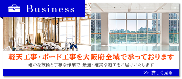 軽天工事やボード工事をはじめとした内装工事などの事業に取り組んでおります。